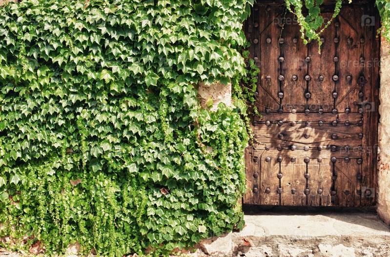 Деревянные двери и плющ