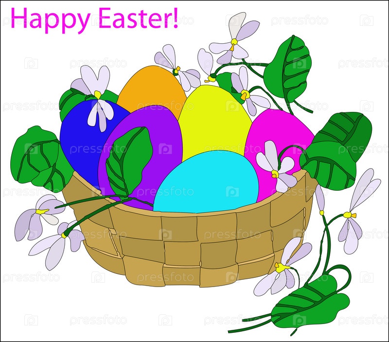 Корзина с пасхальными яйцами и цветами