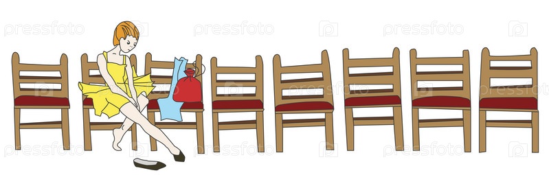 Девочка в желтых платье сидит на стуле, ожидание