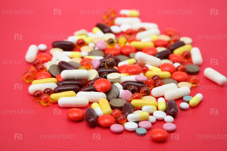 Куча различных таблеток на розовом фоне