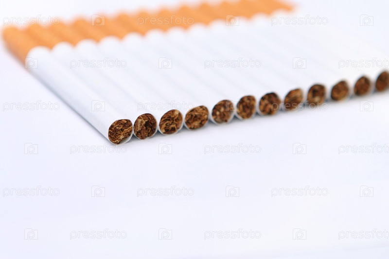 Ряд сигарет на белом фоне