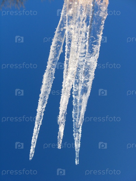 Сосульки на фоне голубого неба