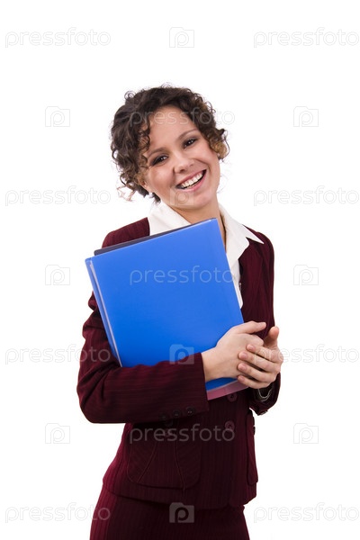 Счастливая успешная женщина с папками