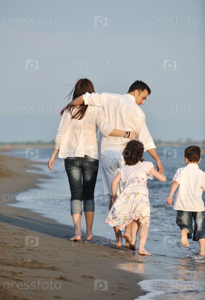 Счастливая семья на морском пляже