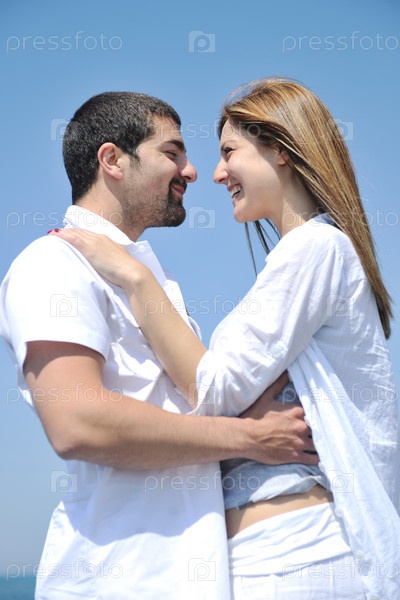 Счастливая молодая пара на пляже