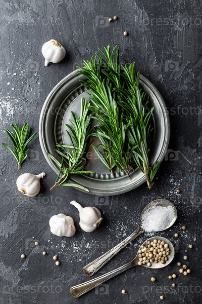 Розмарин, чеснок, соль и белый перец