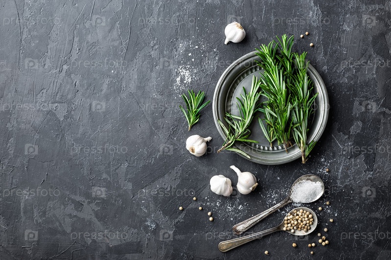 Розмарин, чеснок, соль и белый перец
