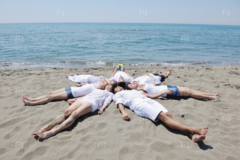 Молодые люди лежат на песке