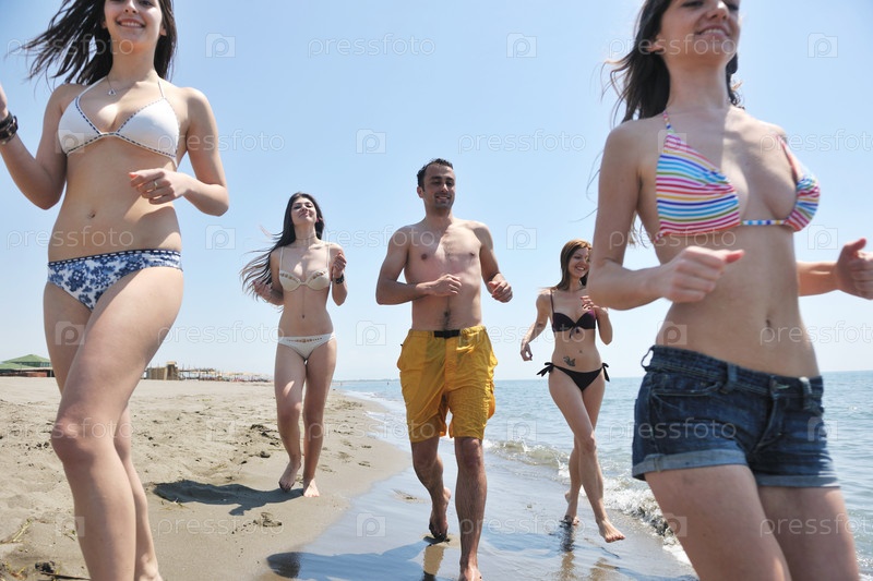 Молодые люди на берегу моря в солнечный день