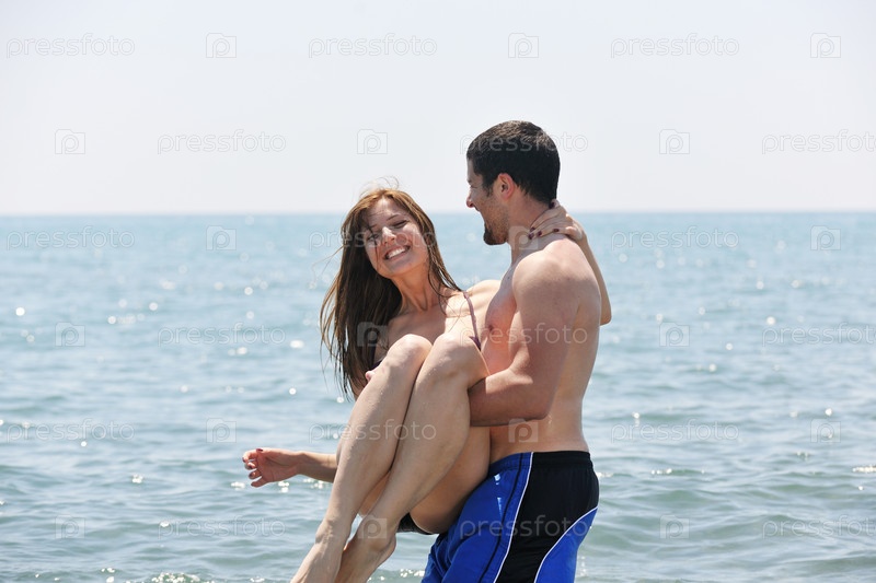 Молодая счастливая пара на пляже