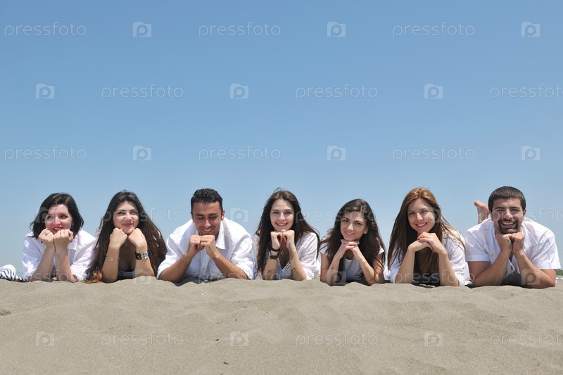 Счастливые молодые люди отдыхают на пляже