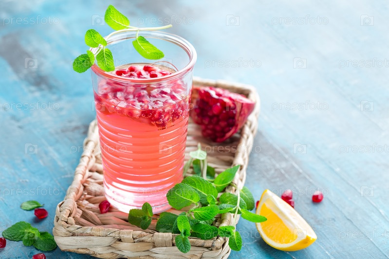 Гранатовый напиток с лимоном, мятой и льдом