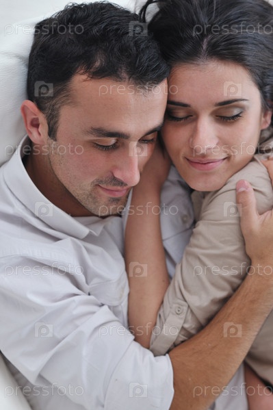 Счастливая молодая пара у себя дома