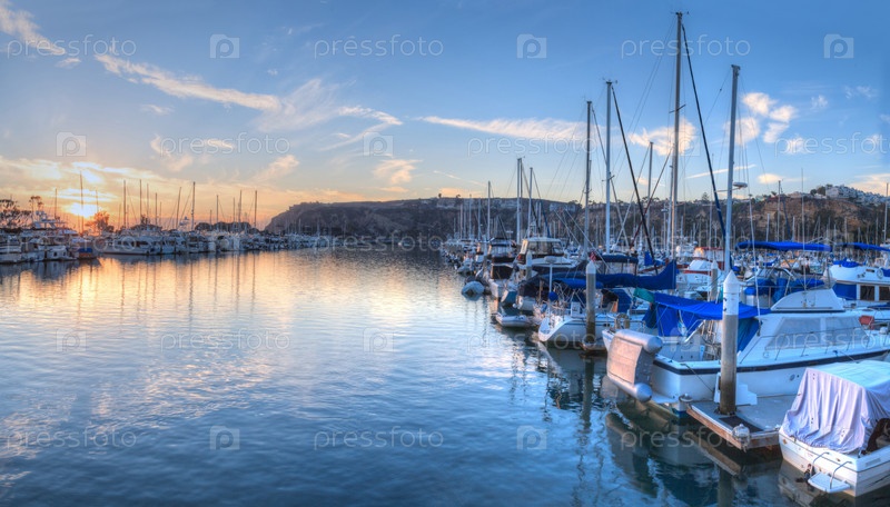 Закат над парусными лодками в гавани Дана-Пойнт