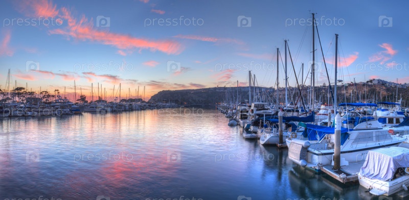 Закат над парусными лодками в гавани Дана-Пойнт