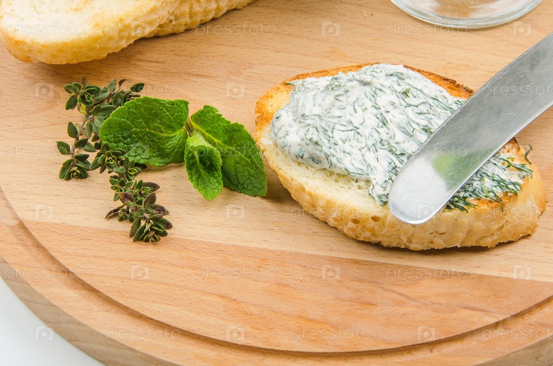 Багет с мягким сыром с зеленью