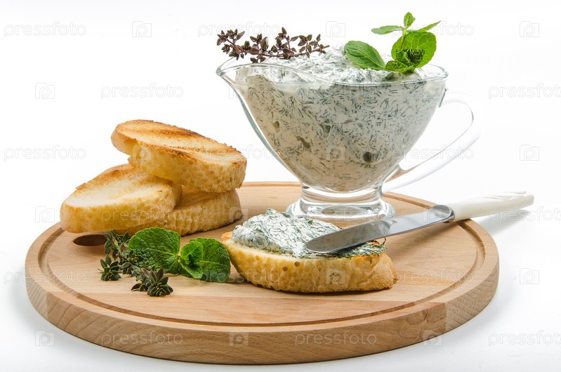 Багет с мягким сыром с зеленью
