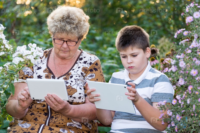 Бабушка и внук с планшетами