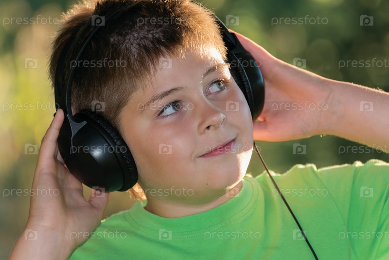 Слушать музыку с наушниками в парке