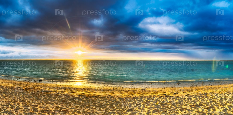 Пляж на закате. Панорама