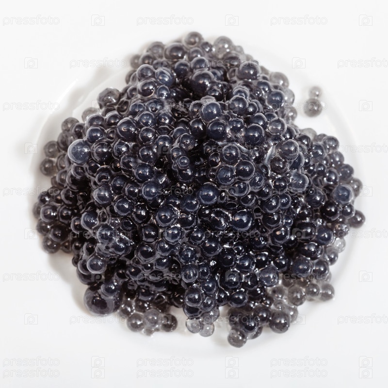 Черная икры палтуса на белом фоне