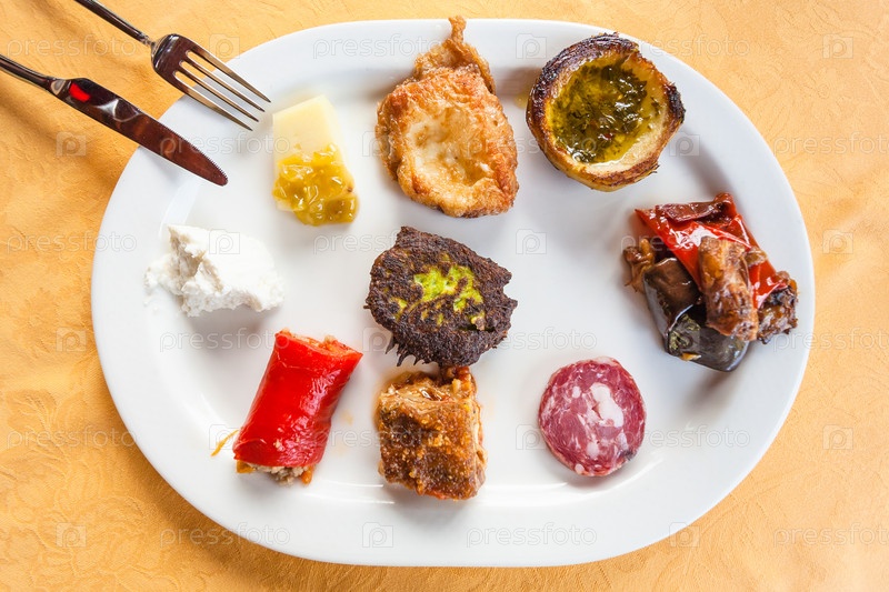 Тарелка с различными сицилийскими закусками