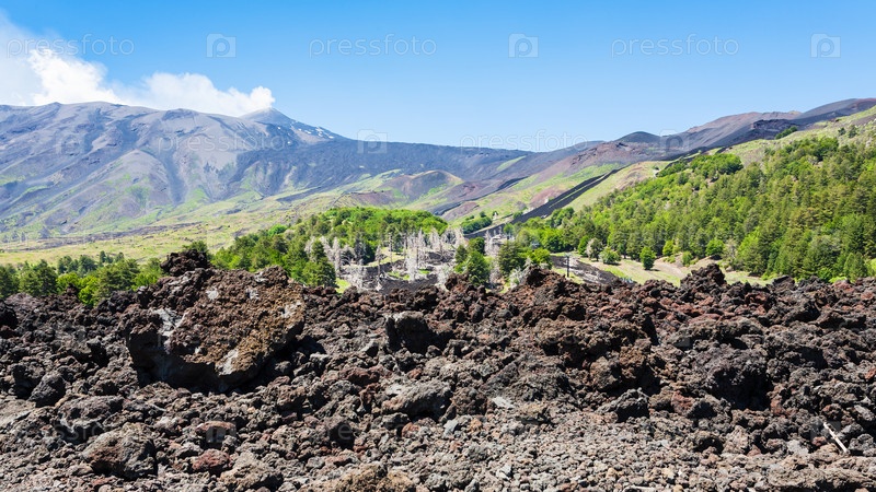 Застывшая лава на склоне вулкана Этна