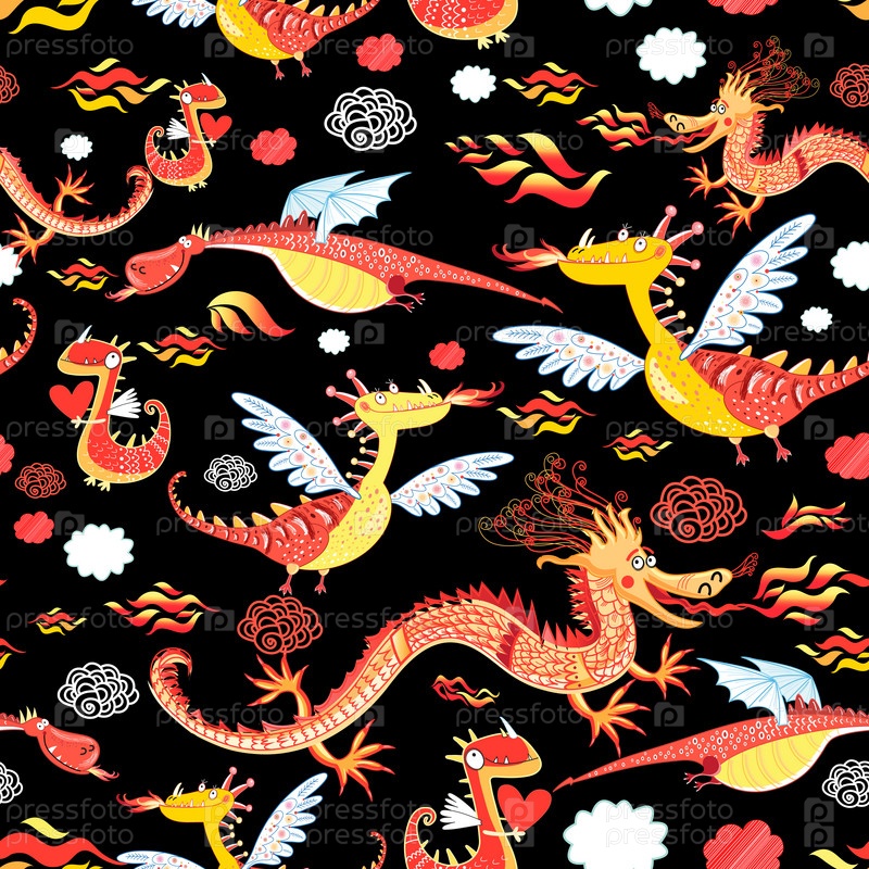 Бесшовный фон смешные драконы