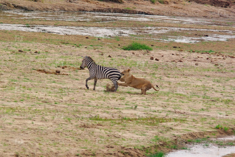 Лев охотится