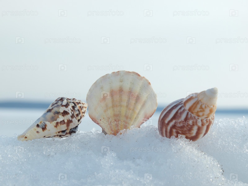 Три разных ракушки на снегу