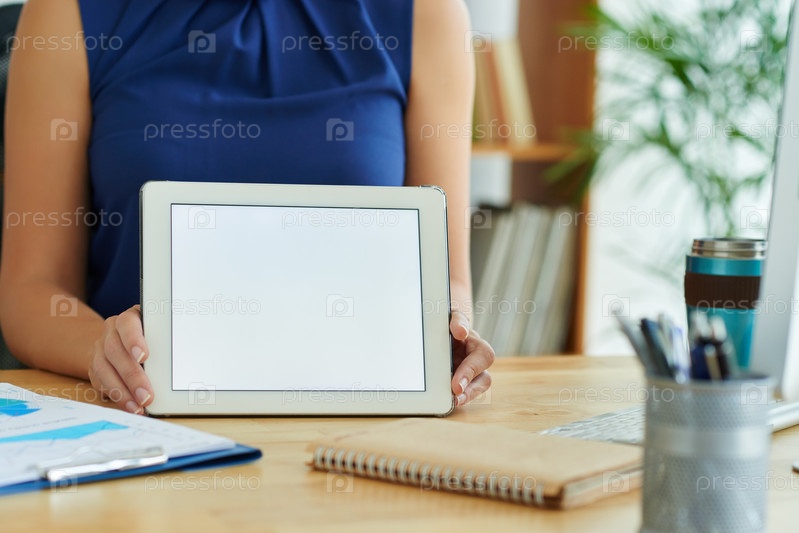 Показывая экран планшета