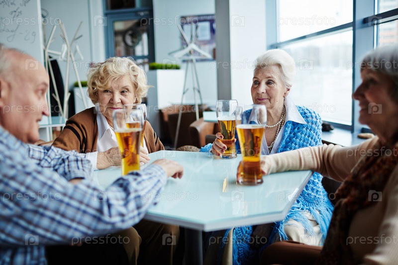 Пожилые друзья в кафе