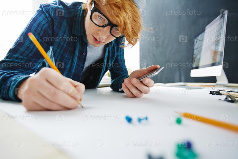 Рыжеволосый парень занят рисованием