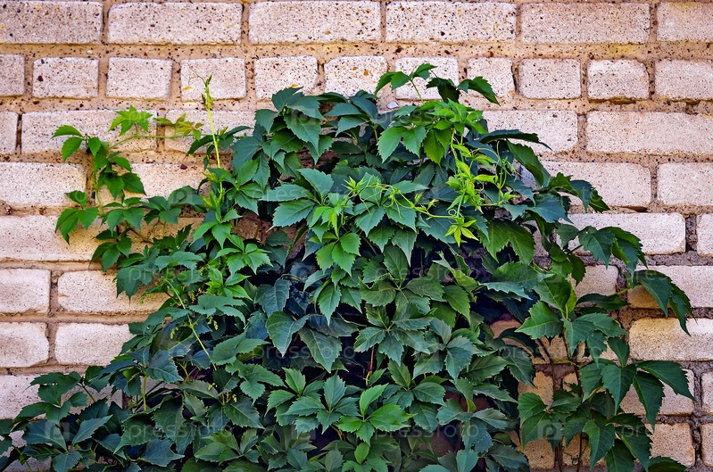 Девичий виноград на фоне стены из кирпича