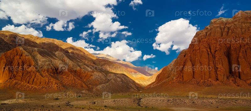 Пейзаж цветных гор у реки Кокемерен, Кызыл-Ой, Кыргызстан
