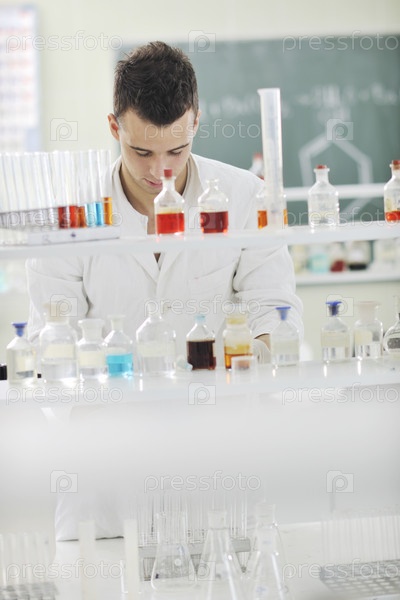 Молодой ученый в химической лаборатории