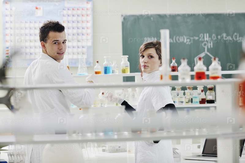 Молодые ученые работают в лаборатории