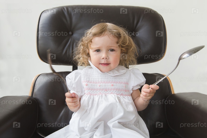 Девочка с ложкой и вилкой
