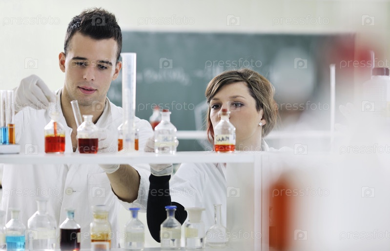Двое студентов проводят исследование в лаборатории
