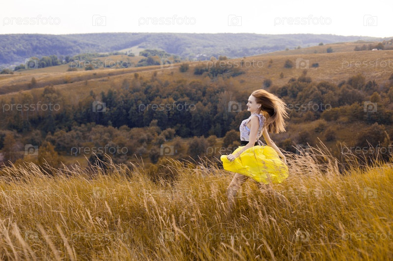 Девушка бежит по полю