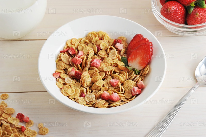 Кукурузные хлопья с клубникой