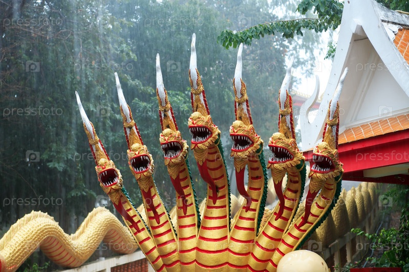 Буддийский храм в Таиланде под дождем