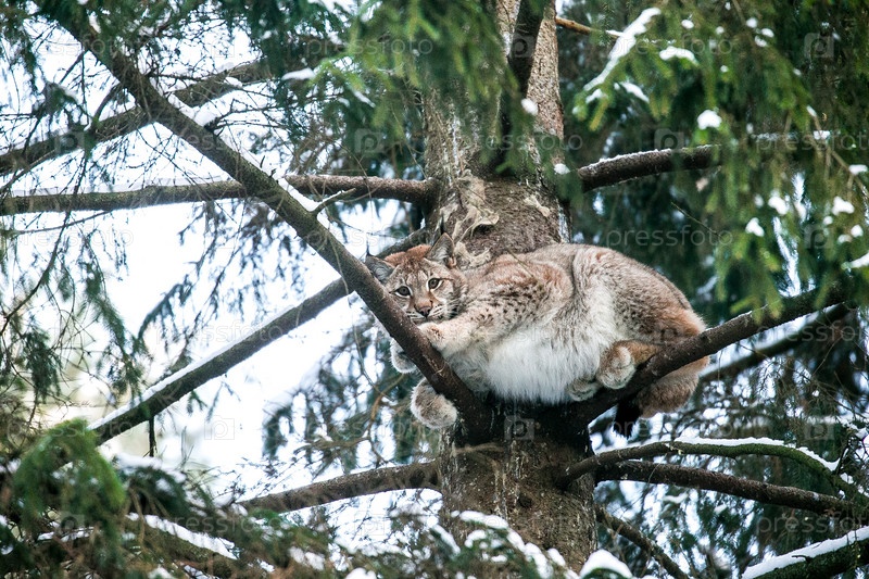 Рысь в зимнем лесу