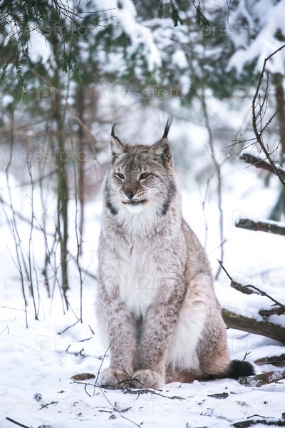 Рысь в зимнем лесу