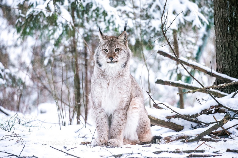 Рысь в зимнем лесу