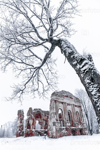 Руины старой церкви в зимний день