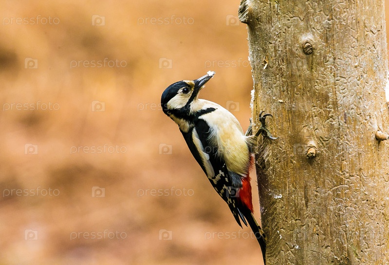 Большой пятнистый дятел в весеннем лесу