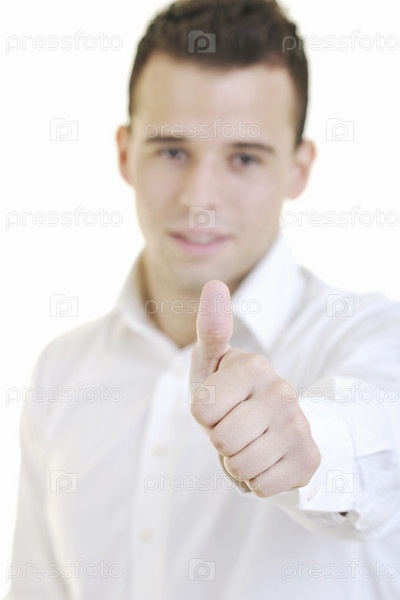 Молодой деловой человек показывает знак "отлично"