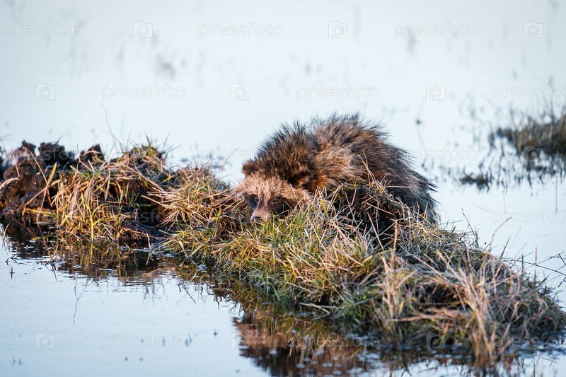 Енотовая собака на болоте