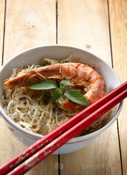 Лапша с большими креветками